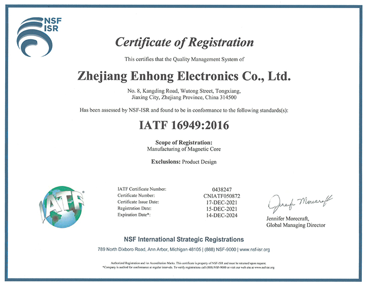 A produção anual de núcleos magnéticos ultrapassa 15 milhões de peças.